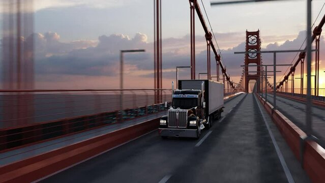 American style truck on freeway pulling load. Transportation theme. 4k 3D illustration