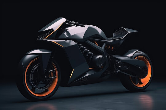 Smoke on background with High power motorcycle at night copy space for text