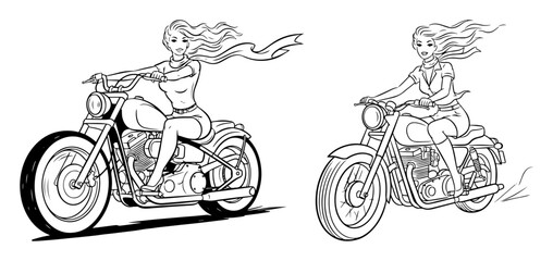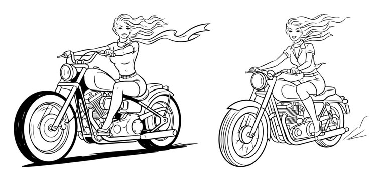 sexy biker girl on a motorcycle pinup vector art