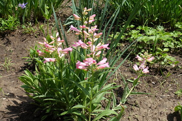 Light pink tubular flowers of beardtongues in May