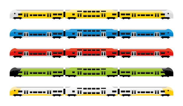 Double-Decker commuter train. A set of colorful wagons. It can be used in infographic and design. All elements are distributed in layers. Their colors can be changed