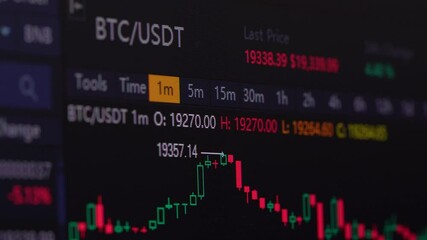 Bitcoin cryptocurrency price chart going up and down on digital market exchange