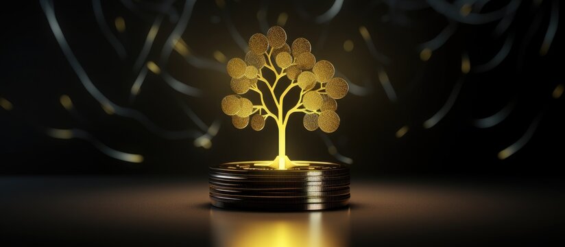 Binance Coin (BNB) symbol shines from a dark background, representing currency growth concept.