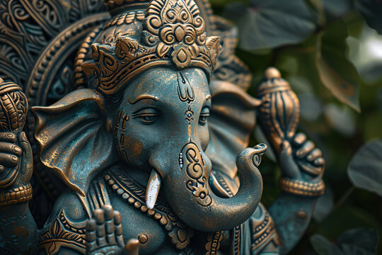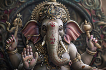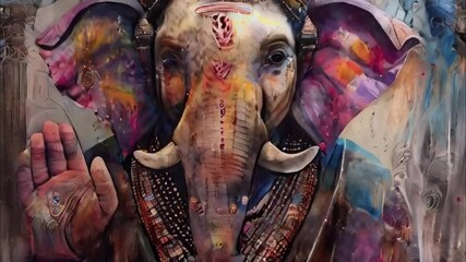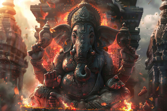 Bright holiday composition for happy Ganesh Chaturthi, abstract vivid composition consists of fictional unreal fantastic vision on background