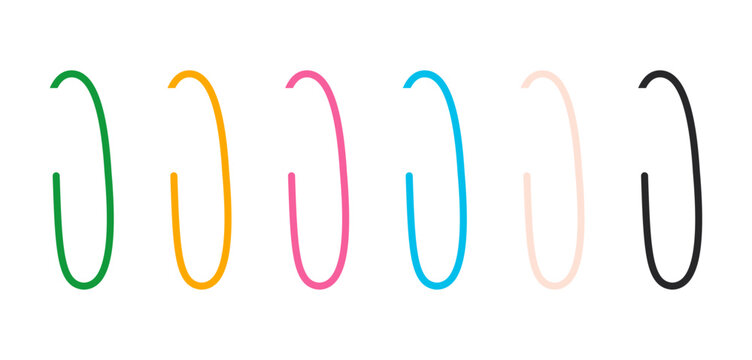 Colored paper clip icons set on transparent background. Paperclips in flat style. Office Paper Clip sign. Vector