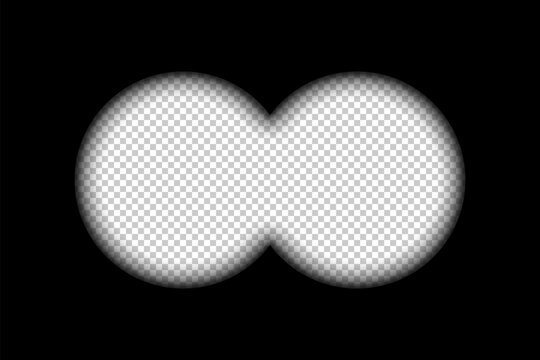 Binoculars viewfinder overlay on transparent background. Spy POV. Circular dual lens without crosshair marks. Military, hunting or spy optical instrument. Realistic vector illustration.