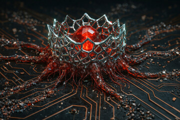 Crowned Bio Crystal Energy Core Integrated with Advanced Circuitry