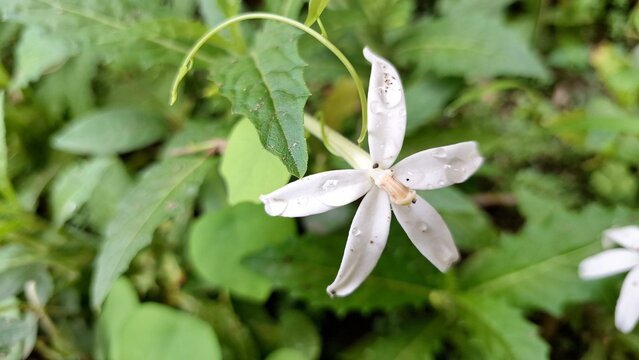 Elegant white Hippobroma longiflora flower against a natural green backdrop, ideal as a serene wallpaper showcasing its traditional medicinal uses and bioactive compounds