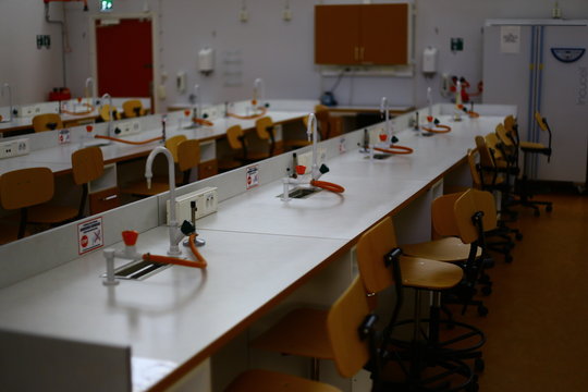 Modern laboratory with chemical tubes and pharmacy technology. Great for biochemistry and research visuals.