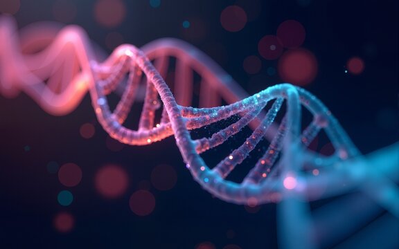 Abstract DNA Molecule Colorful Neon Lights Helix Spiral Wave Background. Medical Science Concept, Genetic Biotechnology, Chemistry Biology, DNA Gene. Science Education Event BG. Vector Illustration.