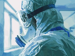 Highsecurity biocontainment lab with airlocks, UV sterilizers, and hazmat suits, biohazard facility, toplevel scientific safety