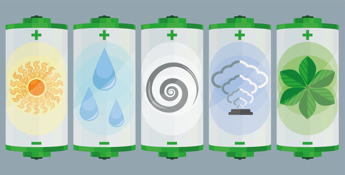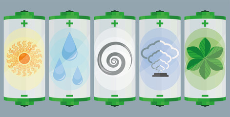The batteries charged by renewable energy sources: solar energy, hydropower, windpower, geothermal energy and bioenergy