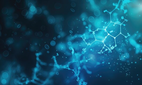 Light blue glowing digital medical science and bioengineering background with molecular connections