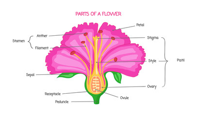 Part of a flower biological diagram, vector illustration drawing with educational scheme.