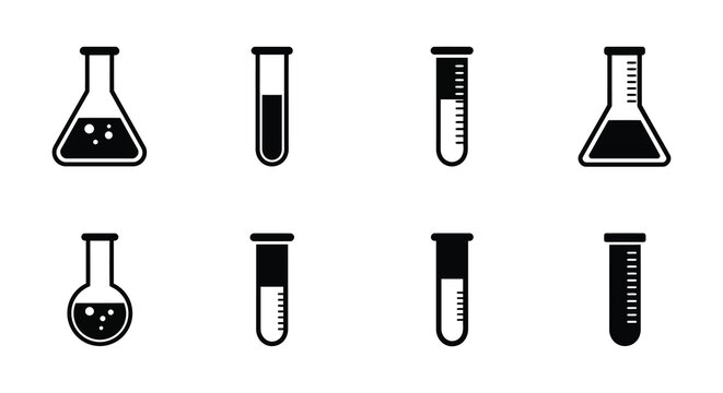 Collection of laboratory equipment icons including beakers and test tubes