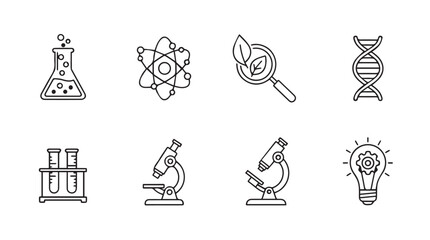 Collection of science and research icons in a hand drawn silhouette style