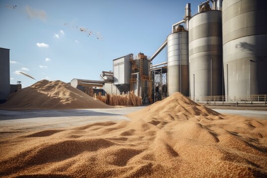 biomass refinery, converting raw biomass into refined products and energy, created with generative ai