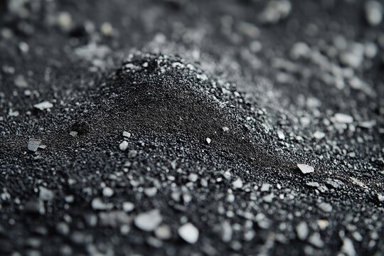 Macro studio shot of dry fly ash powder collected from biomass combustion, spread naturally across smooth neutral background with sharp side lighting for texture visibility, ultra-clean and realistic
