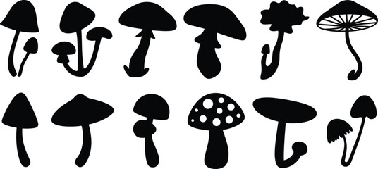 PrintMushroom silhouette illustration, fungi nature vector, botanical design sketch, wild edible poisonous outline icon, forest biology graphic drawing, organic symbol art