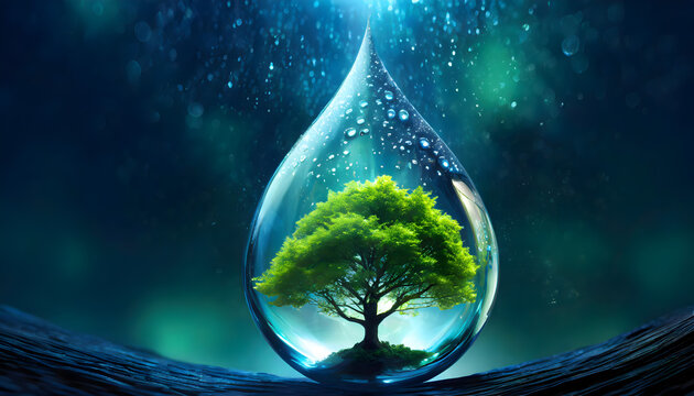 Nurtured Beauty Valuable Tree Growth in Water Droplet - Biotechnology Elixir
