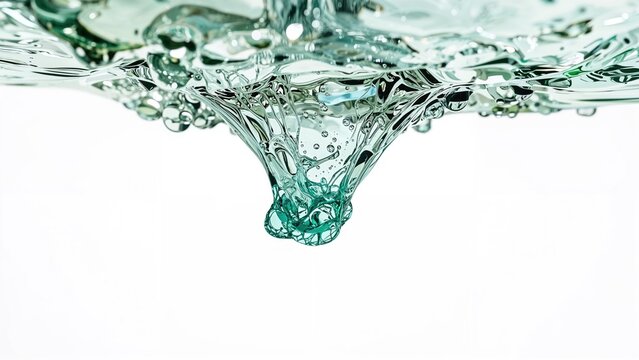 Suspended liquid with bubbles and swellings of azure collagen, idea for the beauty industry, molecule-based skin lotion.