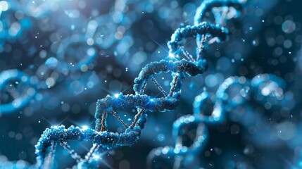 Luxury beauty science visual of salmon DNA PDRN molecule for regenerative skincare biotechnology, golden translucent double helix with soft blue bokeh
