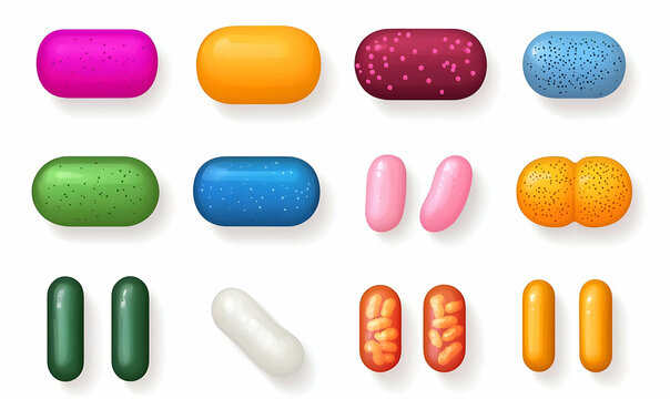 Vibrant Probiotics Display, a colorful assortment of illustrated probiotic cultures showcasing their diverse shapes and hues in a visually engaging manner.