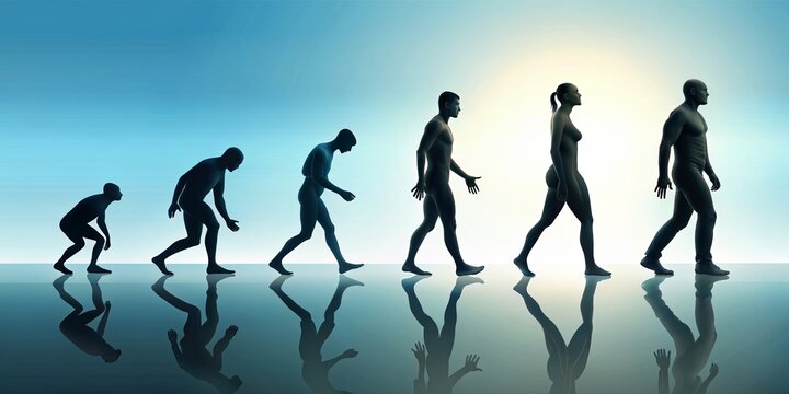 Evolution of creatures from aquatic to human-like forms, evolution, creative, artistic, aquatic, amphibians, reptiles