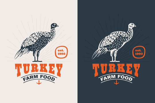 Turkey bird vintage silhouette logo.
