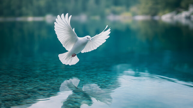 White Dove Standing Between Blurred Flags for Symbolic Representation