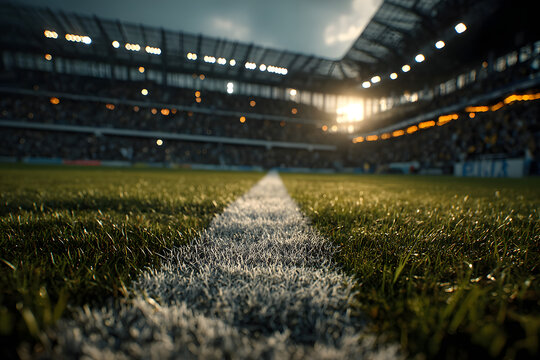 Fotografía de Alta Resolución de un Estadio de Fútbol Nocturno con Luces, Aficionados y Campo Verde, en Estilo SuperResolution y Espacio de Color Pro Photo RGB