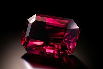 Perfectly cut rubin gemstone, perfectly shaped, shining red on a black background