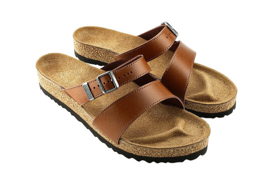 Stylish brown leather Birkenstock sandals with cork footbed perfect for summer comfort and on transparent background