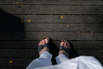 person stand on wooden floor
