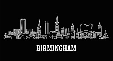 Birmingham map silhouette with outline and dotted pattern vector illustration city geography and cartography icons set