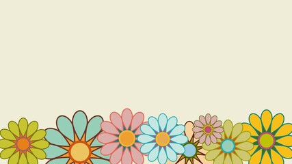 Retro spring background. Animated birth of flowers. Floral drawing animation in flat design