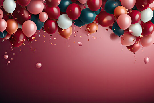 colorful balloons framed with space for text for a party invitation announcement birthday new year copy space