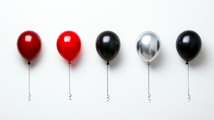 Two red balloons standing out from black and silver balloons on white background Black Friday