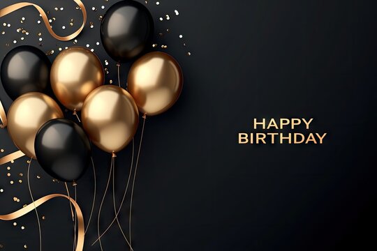 gold balloons for happy birthday on black background Generative AI