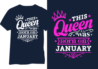 This queen was born on January -Vector illustration for birthday t-shirt design, mug design