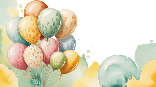 Watercolor birthday balloons and festive greeting for a special celebration watercolor background