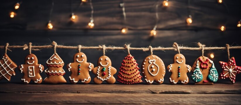 Festive holiday greeting card with gingerbread cookies and seasonal decor
