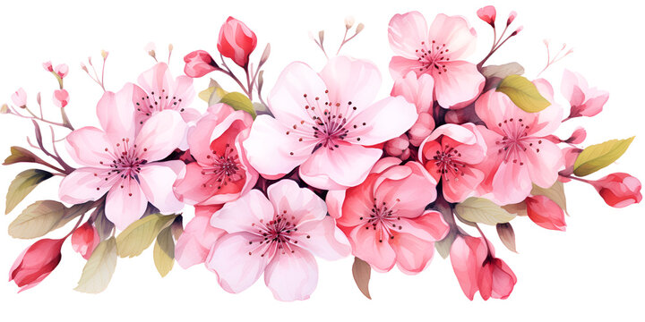 Flower Seamless border pattern set. Hand painted illustration of purple Magnolia bough Wit pink watercolor stains Horizontal repeating border, bisector lovely watercolor flowers with white background.