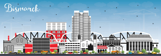 Bismarck North Dakota City Skyline with Color Buildings and Blue Sky.