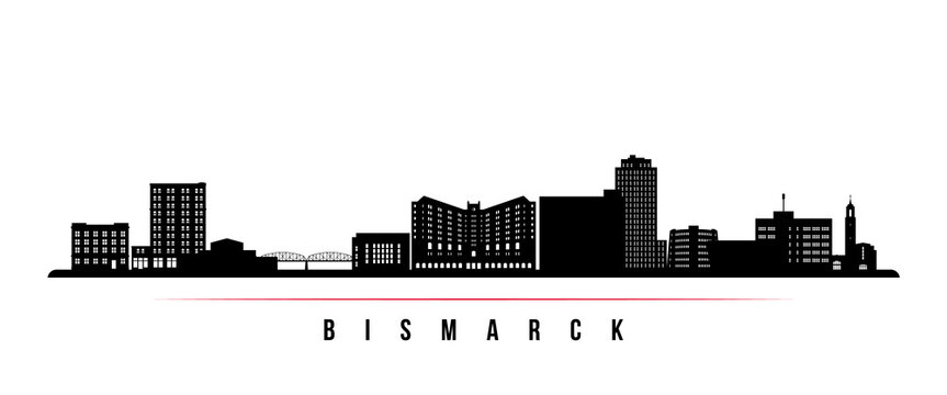 Bismarck skyline horizontal banner. Black and white silhouette of Bismarck, North Dakota. Vector template for your design.