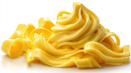 A vibrant, smooth mound of yellow substance resembling butter or creamy sauce, perfect for food-related projects, cooking blogs, or advertising culinary products that emphasize richness and flavor,