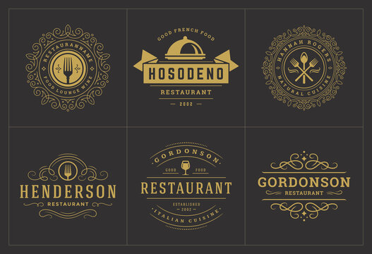Restaurant logos templates set vector illustration good for menu labels and cafe badges