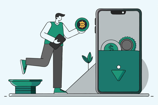 a gold coin with a Bitcoin symbol in the center, surrounded by various icons and lines.