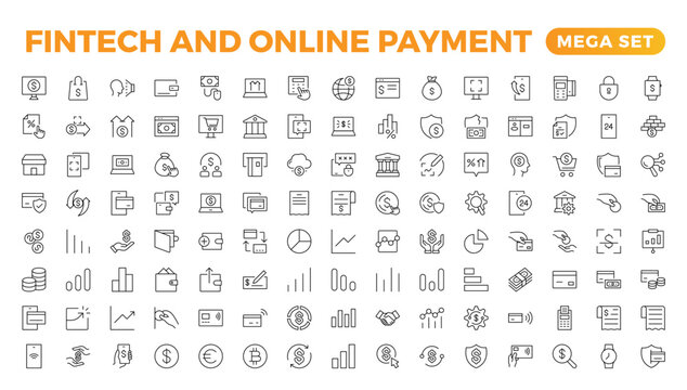 Set of fintech modern icons. Simple line art style icons pack. Vector illustration.Set outline Minimalist thin linear web icon set. vector illustration.Outline icon collection.