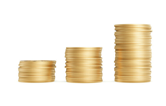 Stack of Gold Coins Cryptocurrency Wealth, Blue Bokeh Background